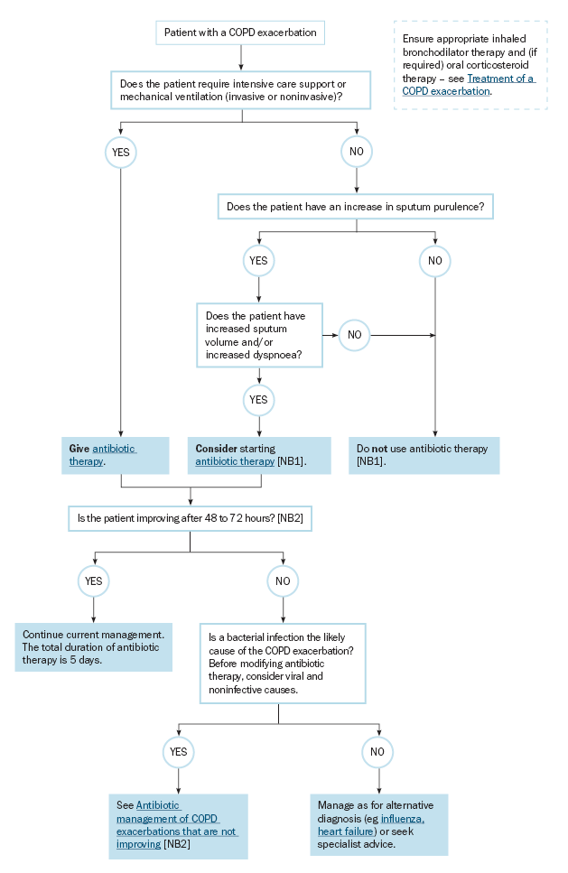 NB1: A decision aid to support discussions regarding antibiotic therapy for COPD exacerbations is available from the Australian Commission on Safety and Quality in Health Care (ACSQHC).